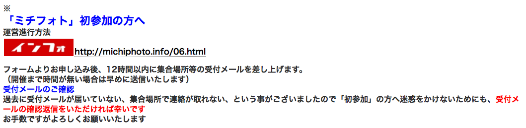●当『ミチフォト』の開催は各開催/各部とも1名以上の参加希望者があれば開催確定となります。