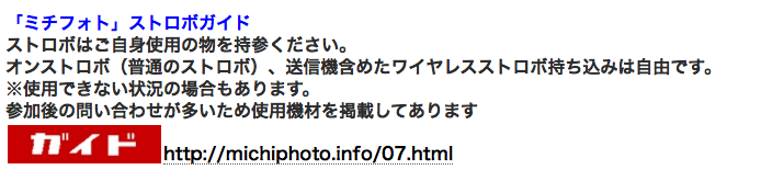 ●当『ミチフォト』は台風や嵐、大雪などにより撮影現場までの公共交通機関がストップしたり撮影が完全不可と判断されない限り小雨や曇り程度なら開催決行となります。